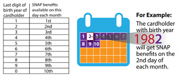 Recipients can figure out their date of delivery by the last number of the applicant’s birth year. If that number is 1, benefits will be available on the first of the month. If that number is 0, they will be available on the 10th day of the month.