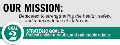 As we work to strengthen the health, safety, and independence of Idahoans, we are proud to share our work with the people of Idaho as we move forward in our strategic goals. You can follow our work and read more about our Strategic Plan on our website.